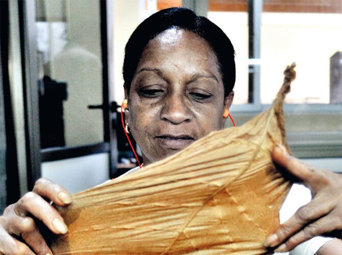 Las manos de Paula Fraga Ceruto se dice que son de hadas, tienen la suavidad de las hojas que ha acariciado durante más de 37 años. La galera de la fábrica de Tabaco Torcido LV-9 de Santa Clara es para ella el lugar que más ha concurrido durante sus casi seis décadas de existencia. Se hizo tabaquera porque le atrajo la fragancia de la preciada y aromática membrana que cubre las brevas tubulares que elabora.