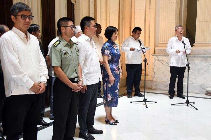 Estimado compañero Ma Hui, embajador extraordinario y plenipotenciario de la República Popular China en Cuba;