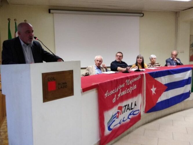 La actividad, realizada en los locales de la Confederación General Italiana del Trabajo (CGIL), fue conducida por Enzo Pescatori, vicepresidente de la Anaic y miembro directivo de MediCuba Europa, y contó con la presencia de las embajadoras de la nación antillana en Italia y Suiza, Mirta Granda y Mayra Ruiz, respectivamente.