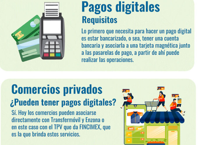 4. Continuar de forma gradual las acciones para la creación de condiciones en todos los comercios y en las entidades prestadoras de servicios, que permitan el cobro con medios electrónicos de pago y el uso de las pasarelas de pago existentes (Transfermóvil, ENZONA, código QR, además de los Terminales de Puntos de Ventas, conocidos como POS) con el beneficio a la población que ello implica, al aplicarse descuentos cuando ejecuten sus pagos.