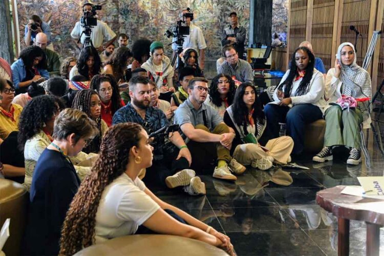 En otro tuit, el jefe de Estado apareció fotografiado entre el centenar de jóvenes estadounidense y con un mensaje en el que expresó: “Palestina duele, y nos tiene que doler todos los días que no hagamos algo por ella. Allí se define hoy la lucha mundial por la justicia y la dignidad”.