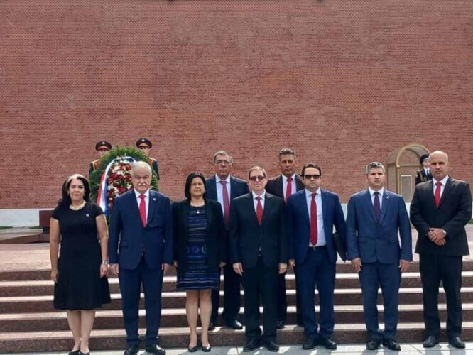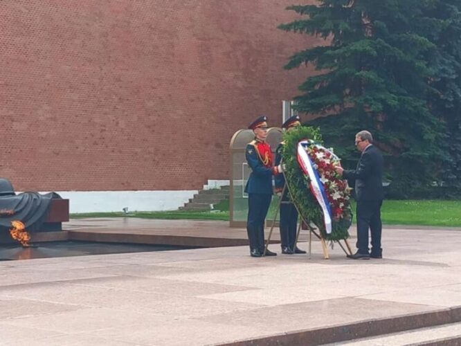 Igualmente, el jefe de la diplomacia de la nación caribeña visitó la Tumba del Soldado Desconocido, para rendir tributo a los héroes de la Gran Guerra Patria (1941-1945).
