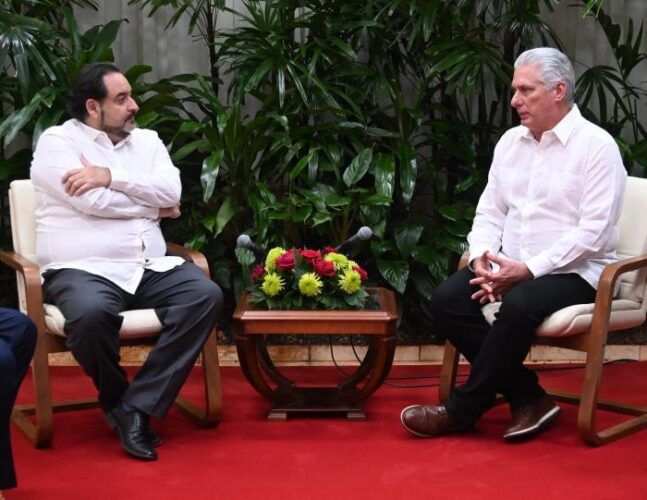Todo el apoyo que la Organización Latinoamericana de Energía (OLADE) ha brindado a Cuba en materia de capacitación, «para poder enfrentar los retos que tenemos en materia de transformación energética del país», fue reconocido por el Primer Secretario del Comité Central del Partido Comunista y Presidente de la República, Miguel Díaz-Canel Bermúdez, al recibir a Andrés Rebolledo Sitmans, secretario ejecutivo de la OLADE.