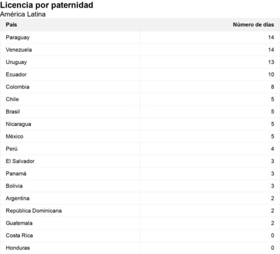 En América Latina y el Caribe, según estudio realizado por ParlAmericas y la Oficina Multi país de ONU Mujeres-Caribe, 15 naciones tienen extendida la modalidad de licencia que, como en Cuba, permite a la madre ceder parte del tiempo de licencia al padre. Este derecho es muy pocas veces empleado. María Paula Reinbold, oficial de Educación y Primera Infancia de la Oficina Regional de Unicef, refiere que solo el 0,2 % de las parejas lo utiliza.
