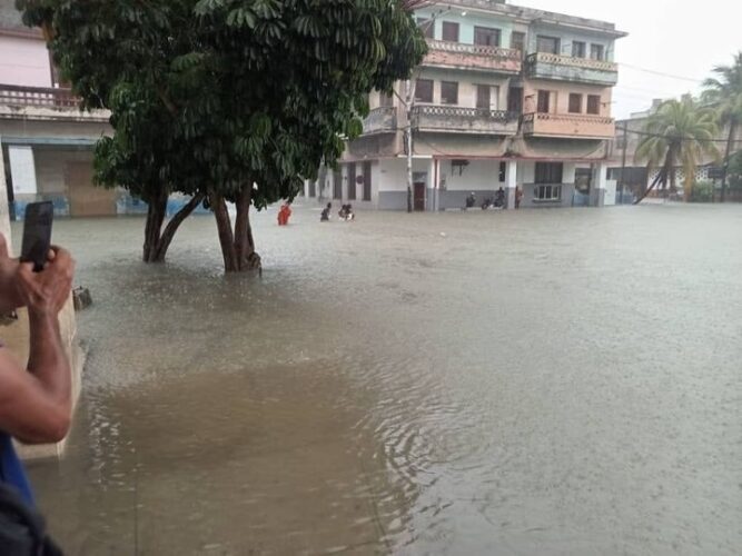 Zonas bajas o cercanas a la costa, como en el Vedado. se han visto mayormente afectadas por la intensidad de las precipitaciones. A continuación fotos publicadas en las redes sociales