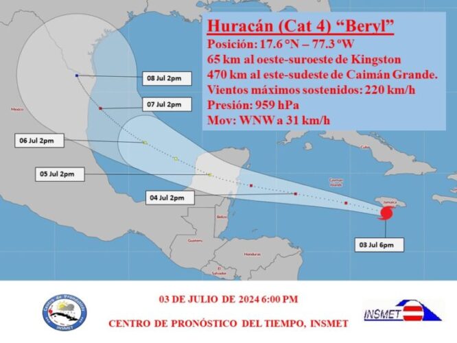En las próximas 12 a 24 horas debe continuar desplazándose con un rumbo próximo al oeste-noroeste, intensificándose aún más antes de alcanzar el arco de las Antillas Menores.