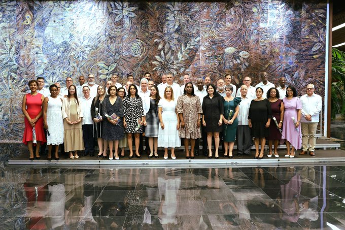 Miguel Díaz-Canel Bermúdez, Primer Secretario del Comité Central del Partido Comunista de Cuba y Presidente de la República, participó este viernes en la ceremonia de juramento de Embajadoras y Embajadores designados en el servicio exterior.