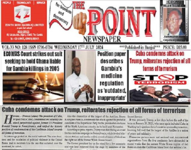 El periódico gambiano The Point resaltó hoy en sus ediciones impresa y digital la histórica postura de Cuba contra todas las formas de terrorismo, reiterada por el presidente de la isla caribeña, Miguel Díaz-Canel.