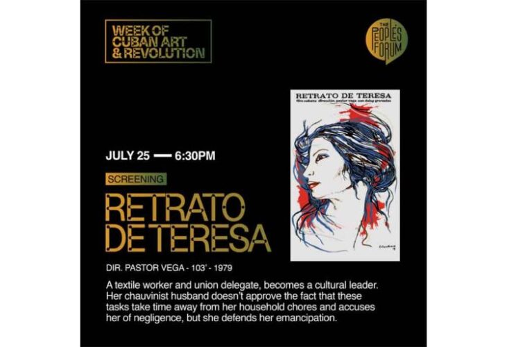 La proyección del filme Retrato de Teresa retomará este jueves la programación de la Semana de Arte y Revolución Cubana del proyecto The People´s Forum, dedicada a tender puentes culturales y celebrar a dos de sus principales instituciones.