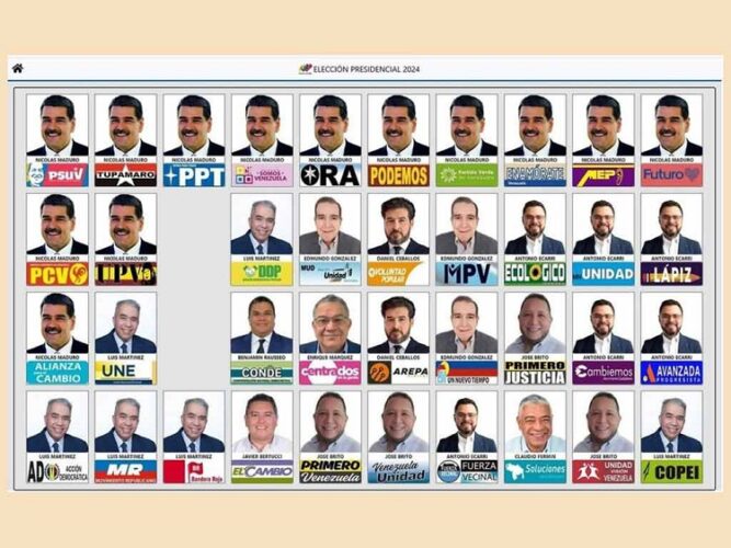 Junto al actual mandatario pujan también los representantes de la variopinta derecha Edmundo González, Luis Eduardo Martínez, José Brito, Antonio Ecarri, Benjamin Rausseo, Claudio Fermín, Javier Bertucci, Enrique Márquez y Daniel Ceballos.
