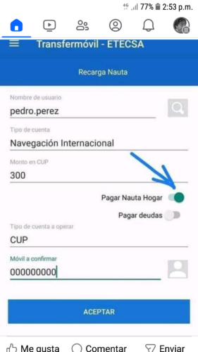Al pagar por Transfermovil hay que ACTIVAR la opción ‘Pagar Nauta Hogar’, de lo contrario estarás recargando tu cuenta con horas y no pagando el servicio.
