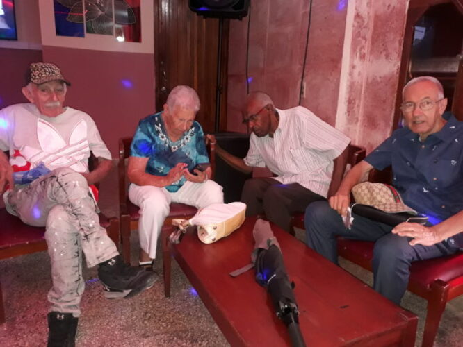 Sabedor de que se negaría a ser centro de esta nota de homenaje por los 62 años del periódico de la actual provincia de Villa Clara, le tomé una foto con otros colegas jubilados.