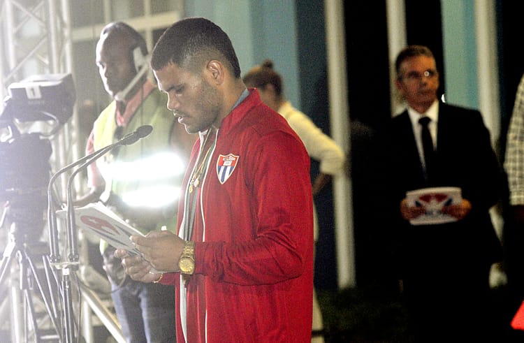Erislandy Álvarez se encargó de leer un comunicado a nombre de la delegación en el que agradeció al pueblo de Cuba por las innumerables muestras de cariño y respeto que han recibido y en el que destacó además el orgullo de ser encabezados por una figura como Mijaín López.