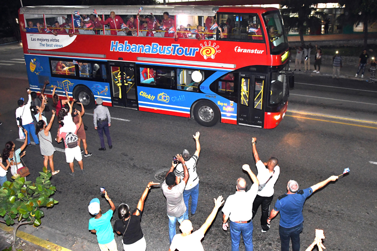 Tras los ganadores del oro desfilaron la subtitular Yusneilys Guzmán (lucha libre 50 kg) y los medallistas de bronce Gabriel Rosillo (97 kg lucha greco), Luis Alberto Orta (67 kg lucha greco), Yarisleidis Cirilo (canotaje), Rafael Alba (taekwondo), Milaymis Marín (lucha libre 76 kg) y Arlen López (boxeo 80 kg)