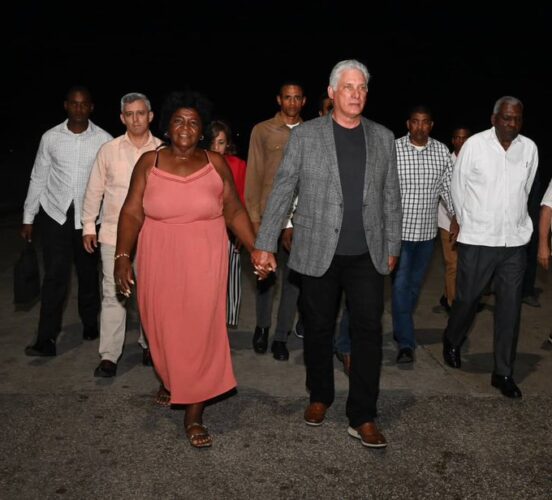 Miguel Díaz-Canel Bermúdez, primer secretario del Partido y presidente de la República de Cuba, recibe a la delegación que asistió a los Juegos Olímpicos de París 2024, a su lado Leonor, la mamá de Mijaín, nuestro pentacampeón olímpico.