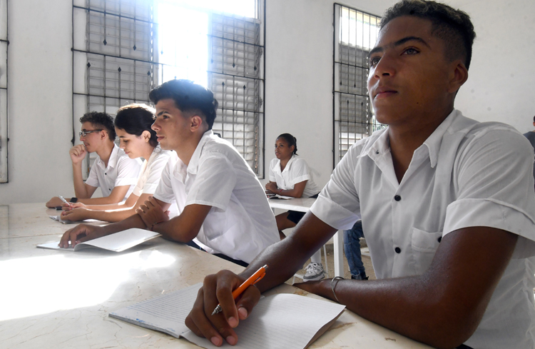 Alumnos de veterinaria recibiendo clases en un aula del Instituto Politécnico Agropecuario Rubén Martínez Villena, ubicado en el municipio Boyeros, en La Habana, Cuba. Foto. Joaquín Hernández Mena