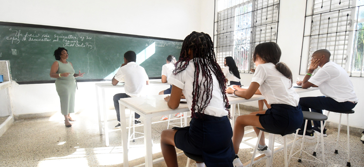 Una maestra (i) impartiendo clases de veterinaria a alumnos del Instituto Politécnico Agropecuario Rubén Martínez Villena, ubicado en el municipio Boyeros, en La Habana, Cuba. Foto. Joaquín Hernández Mena