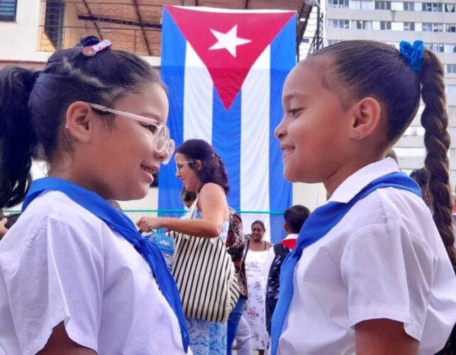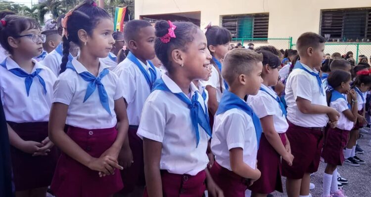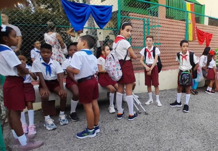 Estudiantes de la escuela primaria, Combatientes de Bolivia, en el inicio del curso escolar, en el municipio Plaza de la Revolución, en La Habana, Cuba. Foto. JLuis Sánchez Rivera