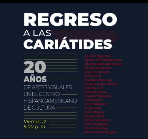 “Los veinte artistas reunidos en Regreso a las cariátides —agregó— mantienen una relación especial con el espacio. De una u otra manera este sirvió para dar forma a ideas determinadas que se desdoblaron en exposiciones personales; exposiciones que marcaron un momento significativo en la carrera de cada uno. Ahora vuelven en su aniversario veinte, dando fe por separado de la importancia escondida de un inmueble. Reacomodan un cuerpo visual en esencia divergente, armando un homenaje que decide hablar en imágenes”.