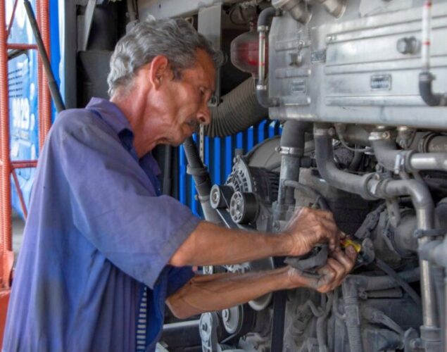 “La tarea principal es la revisión técnica diaria de los ómnibus para su posterior disponibilidad. Ahora mismo, por ejemplo, llegó uno que estaba en funcionamiento, pero necesita chequeo de los niveles, el apriete de la tornillería, etc”.
