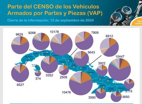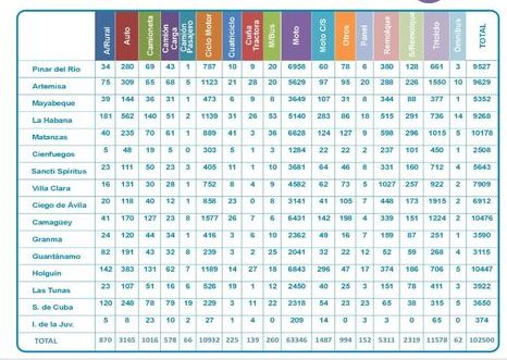 Las mayores cantidades están en las provincias de Holguín, Camagüey y Matanzas; y en la cifra se incluyen ciclomotores 10 932, motos sencillas 63 346, motos con sidecar 1 487 y triciclos 11 578, con un total de 87 343 que representan en su conjunto el 85.2 por ciento de los registros.