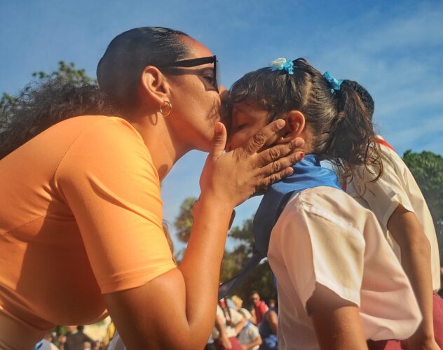 Alina Fajardo Aguilera, pequeña de seis años, mostró alegría al recibir su pañoleta azul de manos de sus padres Ariadna y Ranier, quienes al igual que otras familias, dieron colorido al cambio de atributo, importantes y hermosos procesos de la Organización de Pioneros José Martí (OPJM) en los colectivos de primaria y la educación especial.
