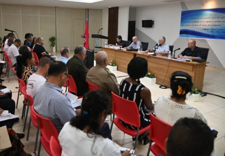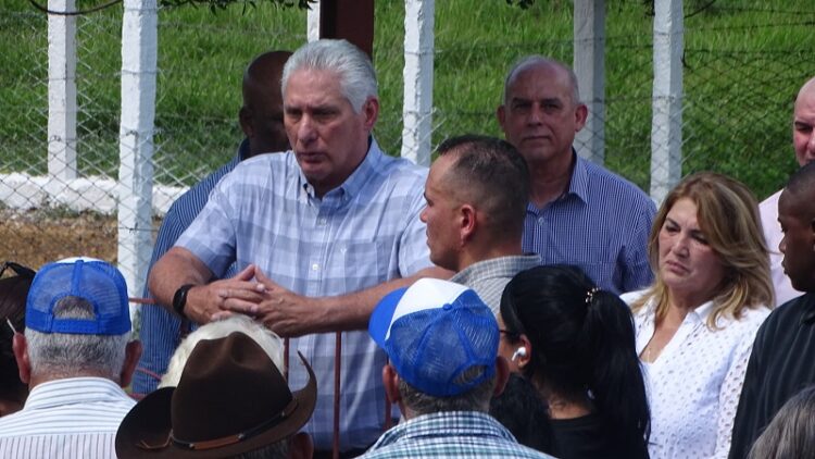A Díaz-Canel lo acompañan las máximas autoridades de la provincia y el municipio.