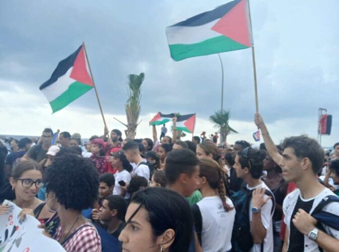Miles de jóvenes junto a habitantes de esta capital reclamaron hoy, en nombre del pueblo de Cuba, el cese del genocidio del gobierno sionista de Israel contra el pueblo palestino y sus ataques a otras naciones de Oriente Medio.