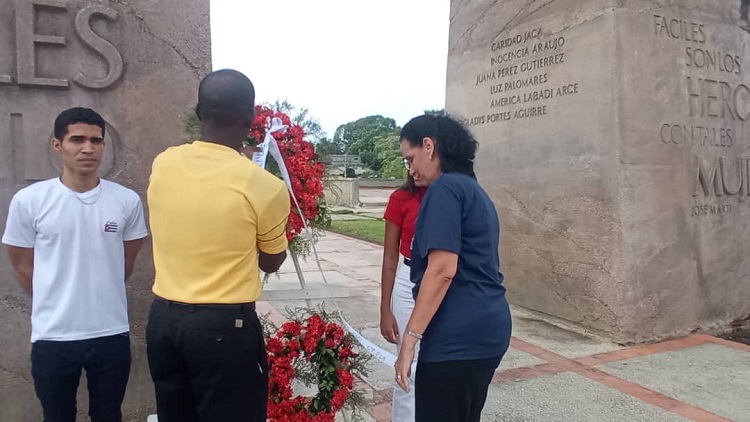 Previo a la cita, los noveles fiscales guantanameros y santiagueros depositaron una ofrenda floral ante el conjunto escultórico erigido a la heroína Mariana Grajales en la homónima Plaza de la Revolución inaugurada en la villa del río Guaso el 26 de julio de 1985 por el Comandante en Jefe Fidel Castro Ruz, Líder histórico de la Revolución cubana.