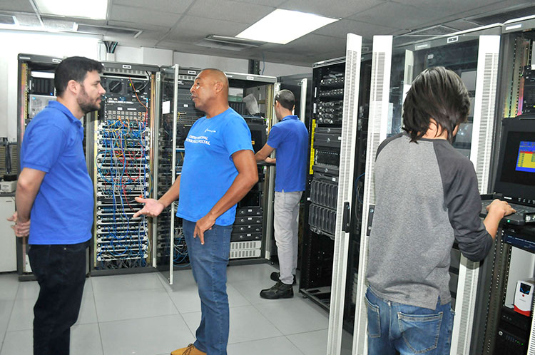 En la UEB de Informática encontramos un colectivo ocupado en sus funciones, pero dispuesto a atendernos. Francisco Ortiz Gaínza, director de Informática y del Centro Tecnológico Postal, comentó que cuenta con 40 trabajadores, como desarrolladores, administradores de red y los encargados de servicios técnicos. “En las oficinas se mantiene generalmente el personal administrativo y a todos les fueron asignados teléfonos celulares y datos móviles, para posibilitar su labor a distancia”, afirmó.