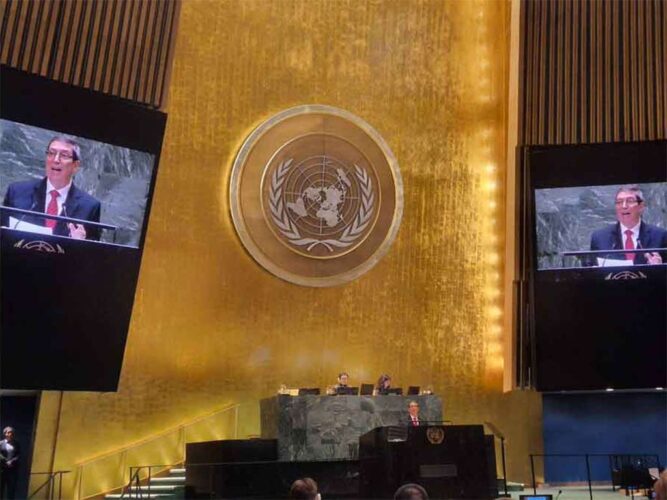 La delegación de Guyana recordó que el injusto bloqueo económico, comercial y financiero impuesto por el Gobierno de EE.UU. a Cuba tiene ya 62 años. “Durante más de seis décadas, el pueblo cubano ha tenido que soportar inmensas trabas y dificultades en su andadura hacia el desarrollo”.