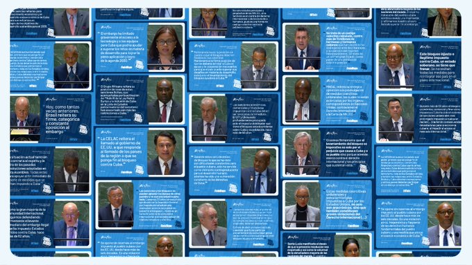 Agradecemos pronunciamientos de las 31 delegaciones que hicieron uso de la palabra en la Asamblea General de @ONU_es, que demandan el levantamiento del bloqueo de EEUU a #Cuba. Mañana continuaremos debate y tendrá lugar la votación contra esa política genocida.#TumbaElBloqueo pic.twitter.com/heL79blBfO