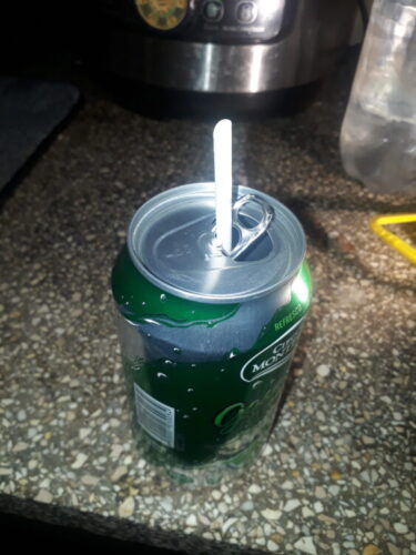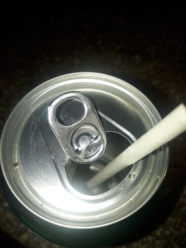 Tuerza hacia la abertura la pieza que usó pata abrir la latica e introduzca en ella el pitillo.