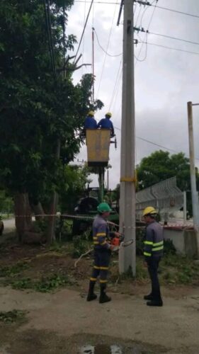 Según reportes de la propia entidad en sus redes sociales, los espirituanos laboran en el municipio Playa, donde realizan acciones de “poda primaria, cambio de crucetas torcidas y establecimiento de conductores partidos tras la caída de árboles”.
