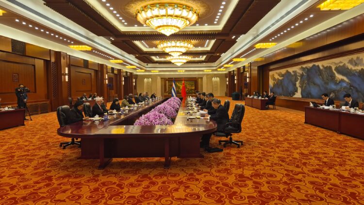 Reiteró, además, la disposición de avanzar en una nueva etapa en las relaciones económicas bilaterales, bajo la premisa de la sostenibilidad y el beneficio mutuo. En materia de cooperación interparlamentaria, señaló que los sólidos lazos y la fluida comunicación existente entre ambos órganos legislativos constituyen una vía esencial para incrementar el intercambio de experiencias en la construcción del Socialismo con características propias y para la edificación conjunta de la Comunidad de Futuro Compartido entre Cuba y China.