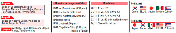 No habrá enemigos pe­queños en el apartado que nos tocó dada la ubicación en el ranking mundial (9no. lugar con cierre 18 de sep­tiembre), pero sin duda los tres equipos asiáticos: Japón, Corea y Taipéi de China, por ese orden, se­rán los rivales más difíci­les, sin que se subestime por ello a los dominicanos y australianos.
