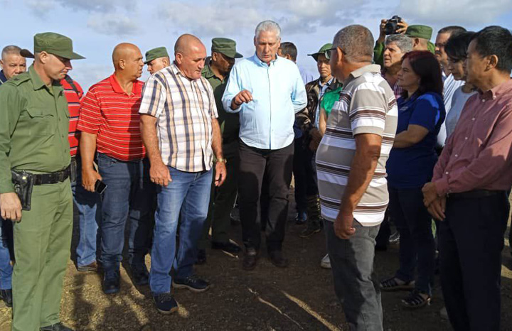 Díaz- Canel Bermúdez indagó por la disponibilidad de fuerza de trabajo, la maquinaria y las estrategias de la UEB para revertir los 20 millones de pesos en pérdidas que tiene; y en ese sentido llamó a la diversificación de cultivos.