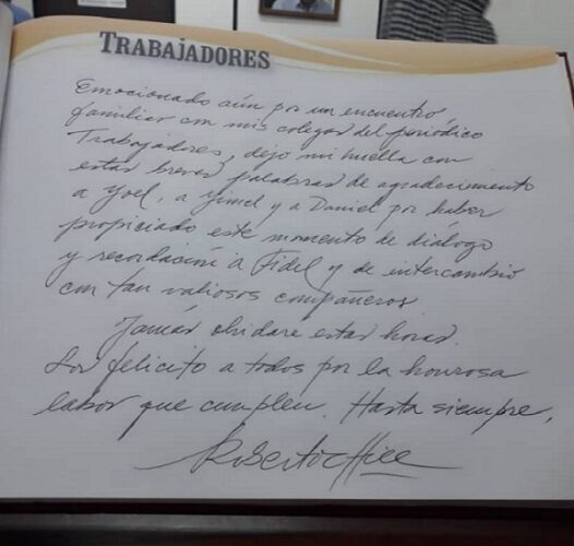 Desde horas de la mañana se percibía en el periódico Trabajadores cierto aire de ilusión e incertidumbre, ese que respira al saber de la visita de uno de los más brillantes documentalistas y fotógrafos de nuestro país, el camarógrafo de confianza de Fidel: Roberto Chile.