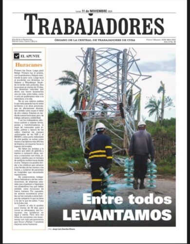 Trabajadores en su edición impresa regresa este 11 de noviembre con una edición muy sensible y actualizada con los últimos hechos acontecidos en Cuba.