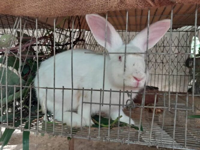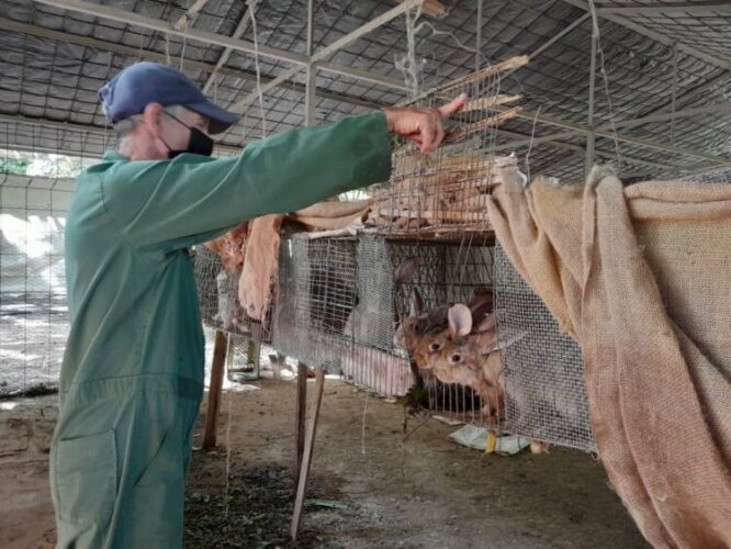 El área de crianza de conejos es otro de los espacios que se observan con admiración. Animales de buen porte son atendidos por un obrero jubilado y también por un veterinario, para que la reproducción y crecimiento siga garantizando parte de la alimentación de los pequeños hijos, nietos o sobrinos de los trabajadores que pasan su primera infancia en la casita infantil de la entidad.