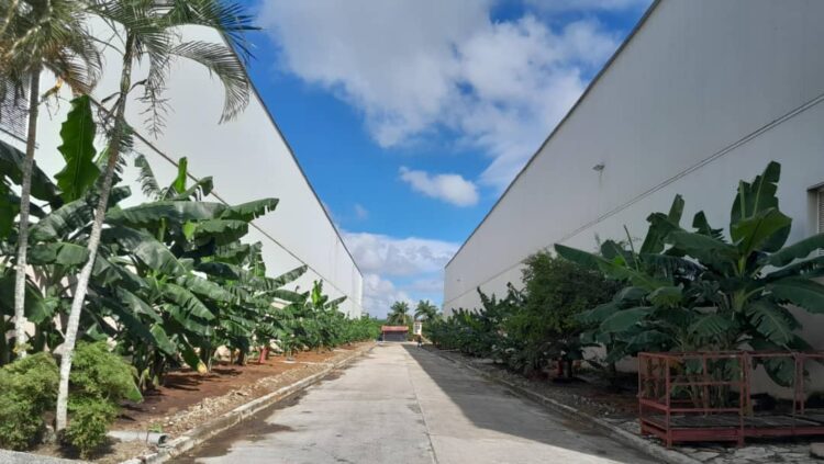 El director general explica que poseen un área de huerto, un organopónico y se aprovecha cada pedacito de tierra que pueda ser cultivado, incluso se han propuesto sembrar casi 600 plantones de plátano burro, algunos de los cuales pueden verse ya esbeltos a los lados de las instalaciones donde se producen los cigarrillos destinados a la canasta básica.