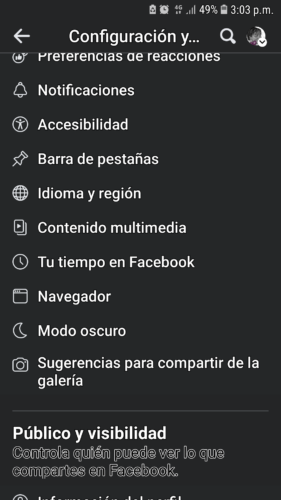 Después seleccionamos Configuración y nos llevará hasta un menú donde al tocar Modo Oscuro, el fondo se oscurecerá.