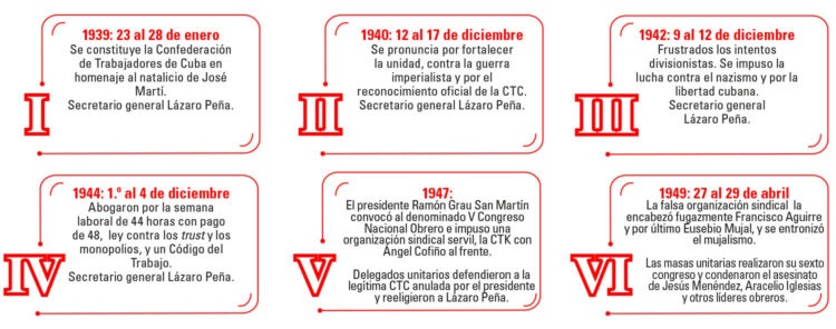 La creación de la Confederación de Trabajadores de Cuba el 28 de enero de 1939 en homenaje a la obra unitaria de José Martí, fue el punto culminante de un proceso arduo y paciente desde la base, en diversos sectores laborales, de abnegados cuadros sindicales que desafiaron la represión del régimen existente y fueron reconstruyendo, paso a paso, el movimiento sindical que había sido destrozado por la reacción tras el fracaso de la huelga general de marzo de 1935.