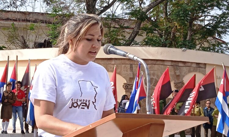 Milena Pérez Correoso patentizó el compromiso de las nuevas generaciones con la continuidad histórica de la Revolución y en su discurso recordó: “Cada generación de cubano ha sido protagonista de su tiempo”, y enumeró como evidencias la Campaña de Alfabetización, la victoria de Playa Girón, la Batalla de las Ideas y el enfrentamiento a la Covid-19.
