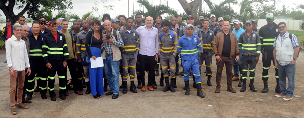 Parte de los fotógrafos y del ejecutivo de la Upec con linieros de Artemisa. Foto: Otoniel Márquez