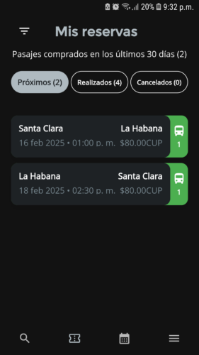 Para consultar los pasajes adquiridos, en la aplicación debe entrar a Mis Reservas: