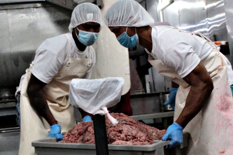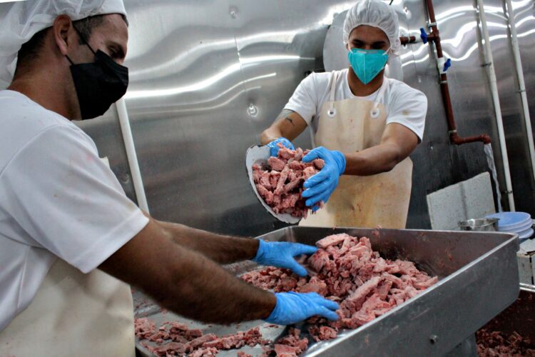 Otra vista de la labor de la fabricación de productos cárnicos, en marcha en el Combinado Lácteo desde el pasado mes de octubre. Foto: Heriberto González Brito