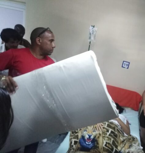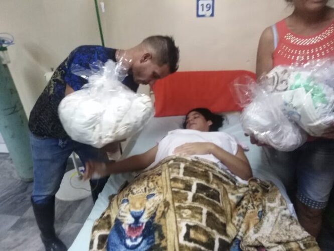 Aún adolorida, pero a la vez muy emocionada Melany, en compañía de su esposo Leynier Romero Arregui, agradeció con su mirada tierna y lágrimas en los ojos a los presentes por tan bello y sensible gesto.