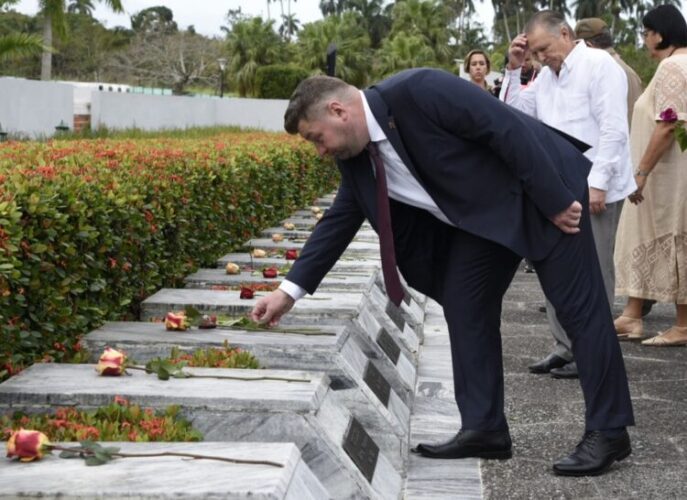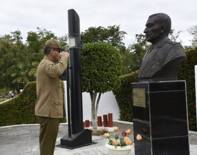 Con la colocación de ofrendas florales, el general de Cuerpo de Ejército Legrá Sotolongo, rindió honores a los combatientes de las antiguas repúblicas soviéticas que ofrendaron sus vidas en Cuba, en el cumplimiento de su deber internacionalista.