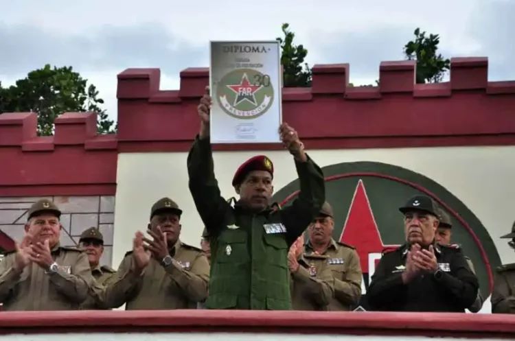 En ese contexto, el Ministro de las Fuerzas Armadas Revolucionarias General de Cuerpo de Ejército Álvaro López Miera entregó un diploma de reconocimiento a la unidad militar firmado por el General de Ejército Raúl Castro Ruz, así como el carnet de militantes del Partido Comunista y de la Unión de Jóvenes Comunistas a oficiales, sargentos y soldados.